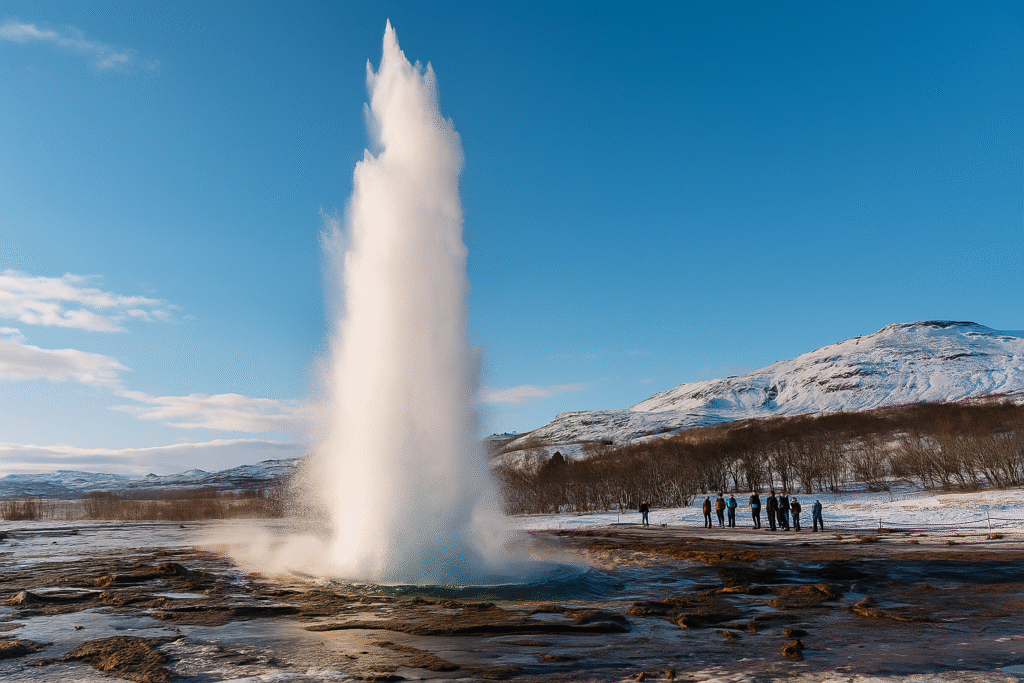 (📸“Strokkur geyser eruption at Geysir Geothermal Area, Iceland”)