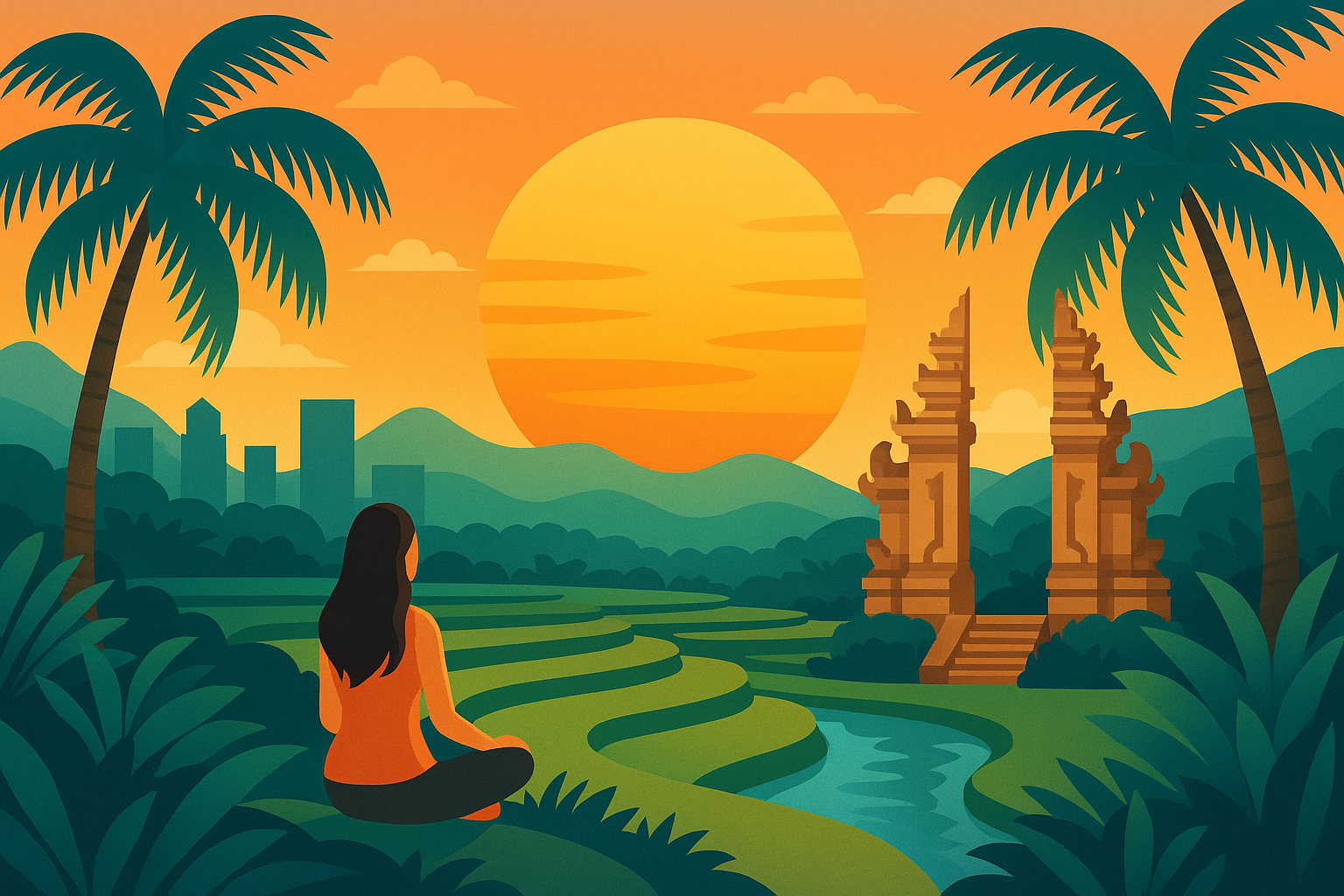 (📸 “Yoga class under palm trees in Ubud, Bali”)