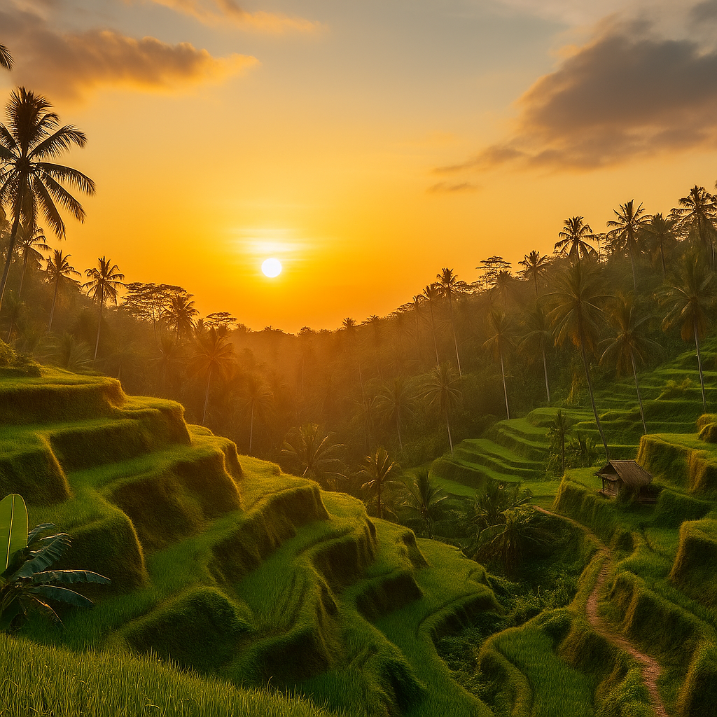 (📸“Sunset view over Tegalalang Rice Terraces, Ubud, Bali”)